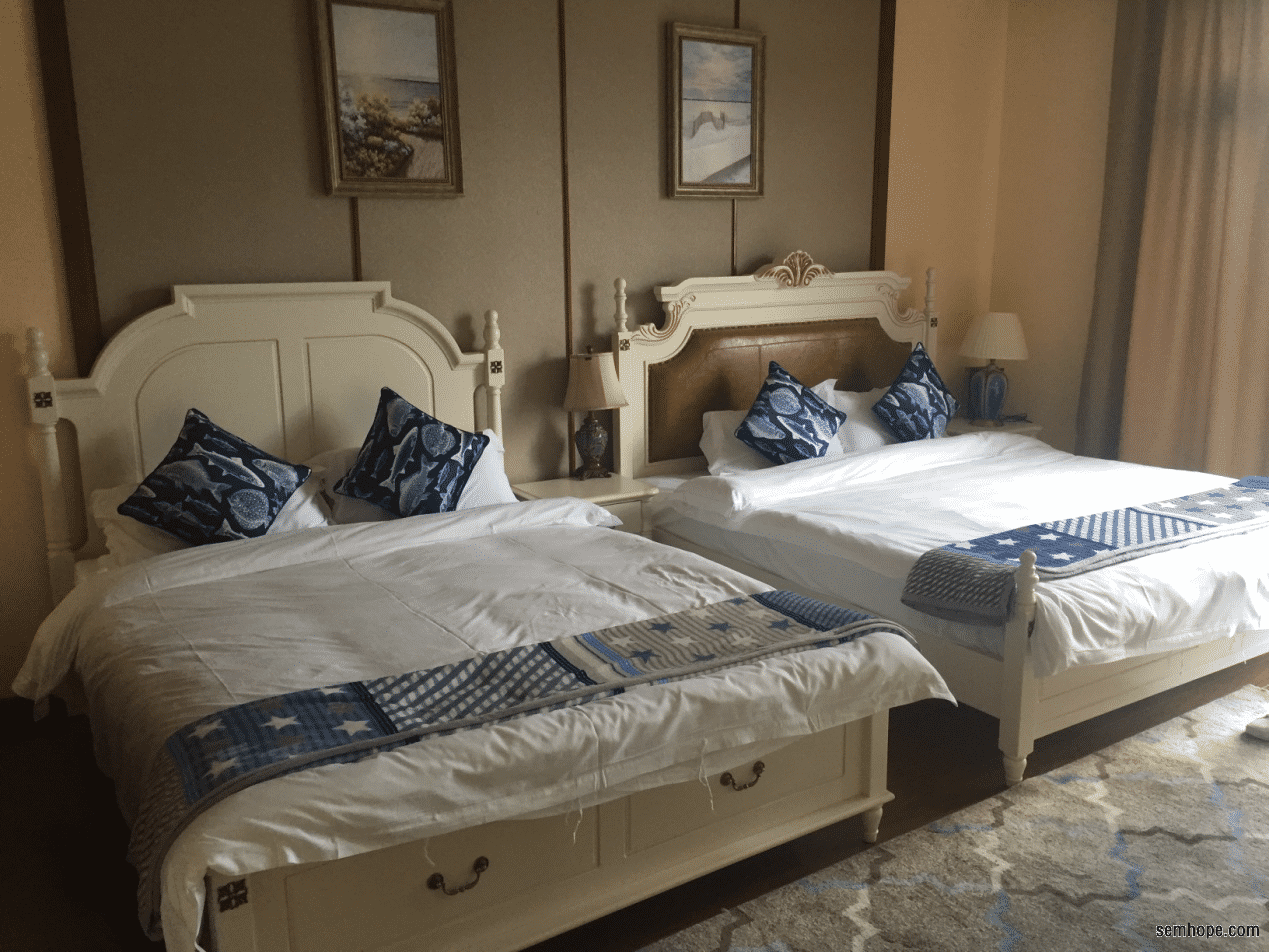 环境还不错,进入各自房间后,小伙伴们都迫不及待的换好装备去沙滩了。