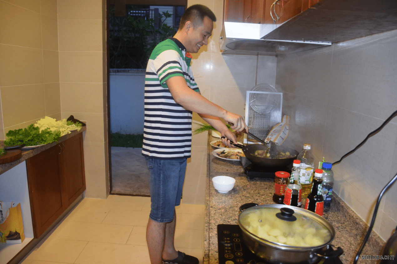 海边玩得差不多啦,就回去做饭了。晚餐自己动手,各位大厨大显身手哇,深弘人有口福啦。