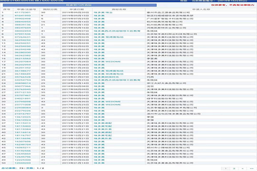 但是,当地著名的北京味多美在商标保护方面却大意了。查询时发现申请“味多美”商标的不在少数。根据商标网数据,共有多达73个“味多美”商标,包括此次事件的两位当事人——北京味多美和大好大。