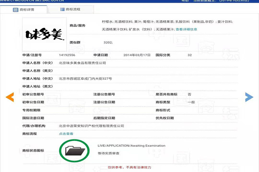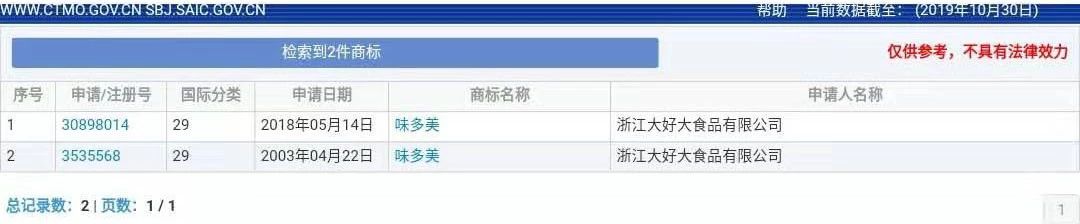 从申请时间来看,大好大是第一个申请使用“味多美”第29类商标的,在2019年再次使用申请了“味多美”29类商标;北京味多美最初是2002年申请的“味多美”商标,但不是申请的29类。就时间而言,成立于1996年的北京味多美似乎更具有拥有“味多美”商标的资格。