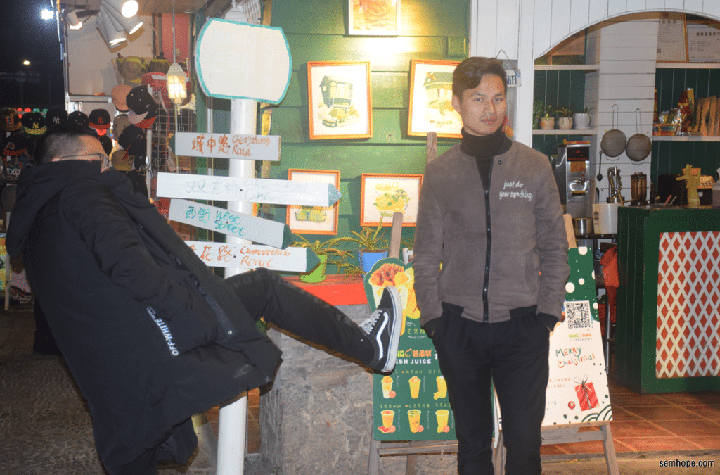 左边的一对情侣和中间的单身狗形成鲜明对比。只得和老板来了一张不知道什么意思的手势压压惊。