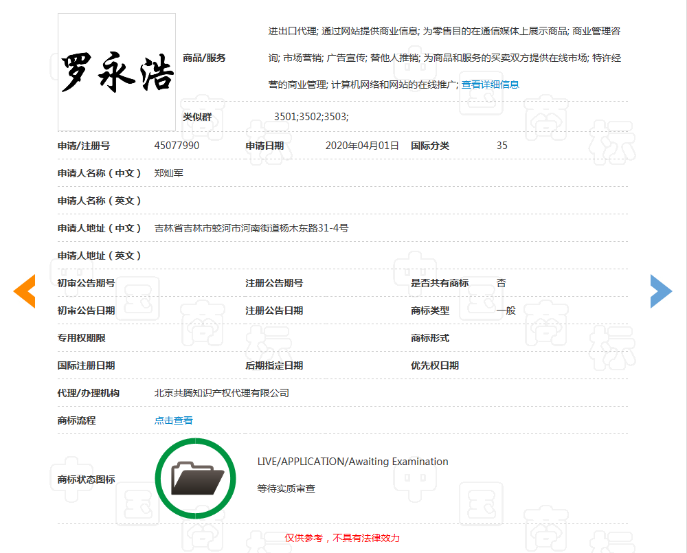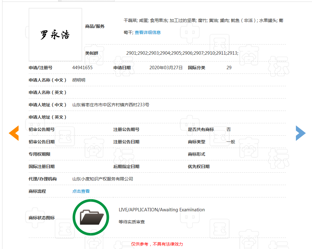 有的网友还让查一下“罗玉龙”商标申请了没有。