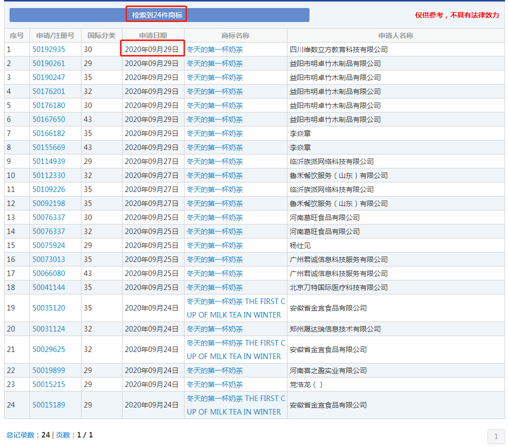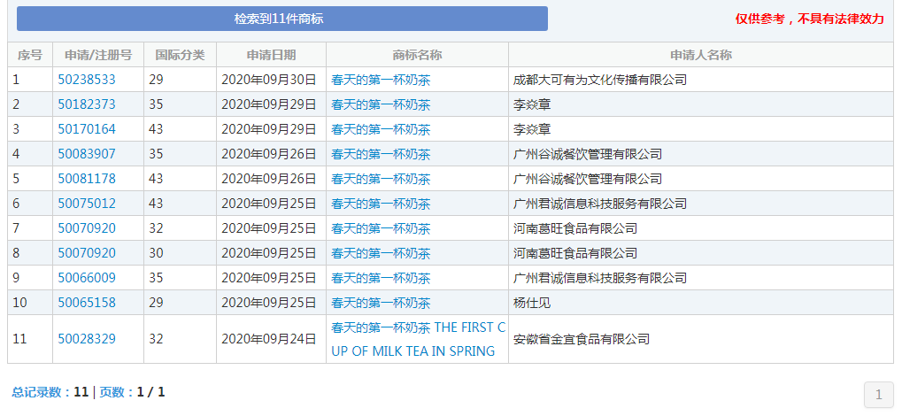 奶茶商家们是打算包圆今年的第一桶金么?不过,目前并没有与此有关的商标申请出现。