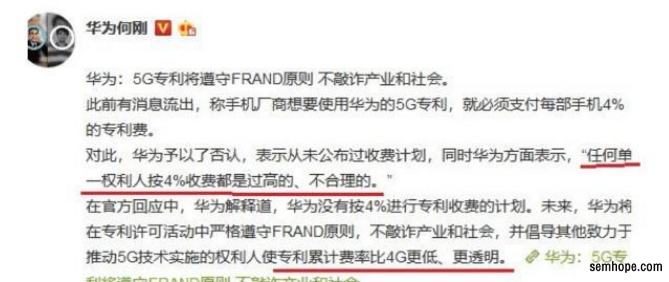 而在投票没有结束前,华为表示4%专利费都是不合理,可能华为5G专利费将在1%左右。但是,万万没有想到仅一票之差,华为输掉了这场投票比赛。有人可能会说,因为华为只取得了25%的专利标准,而高通取得了75%,当然要更贵。相信即便位置互换,华为也不会做出这样的事情。