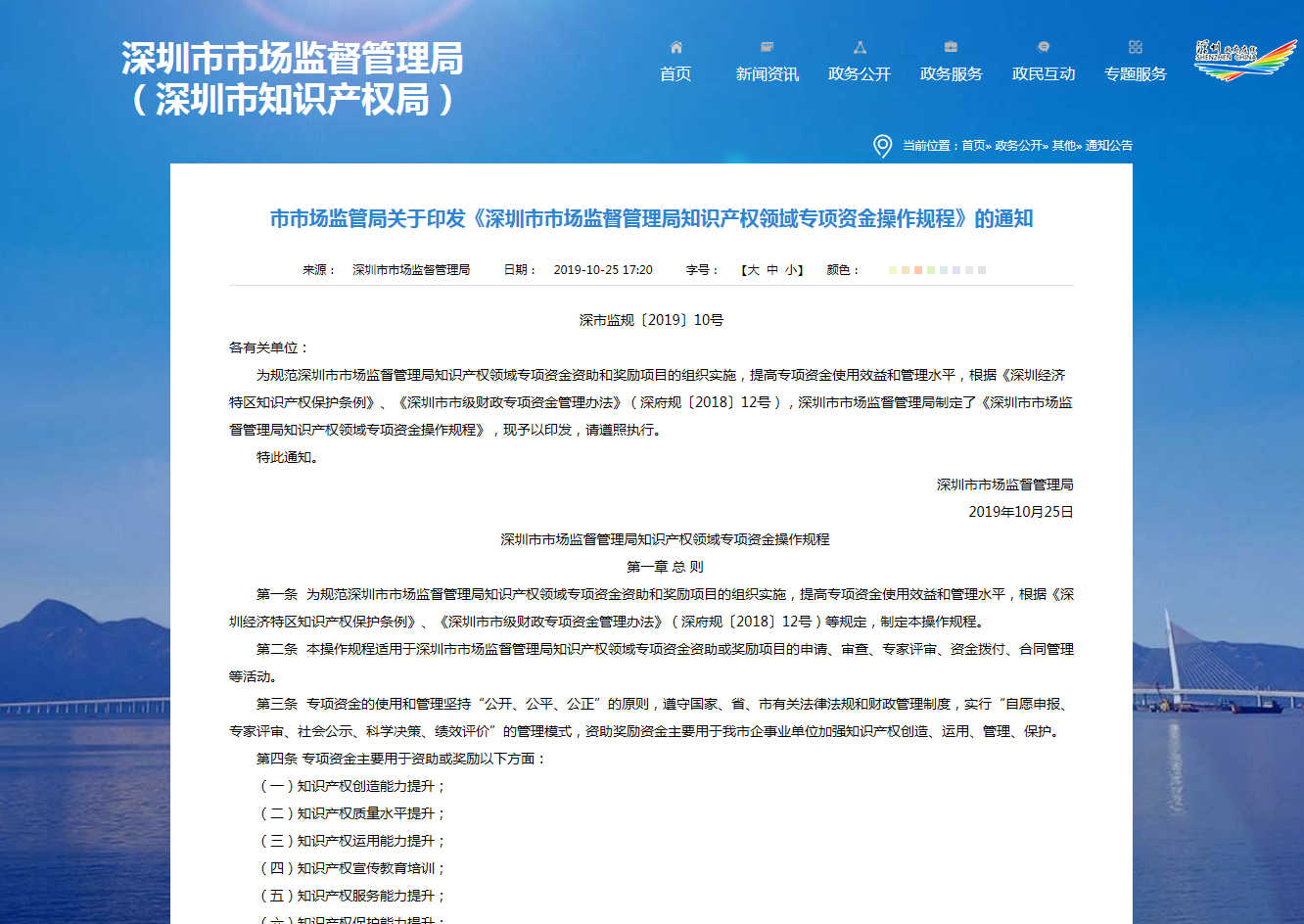 深圳市市场监管局关于印发《深圳市市场监督管理局知识产权领域专项资金操作规程》的通知