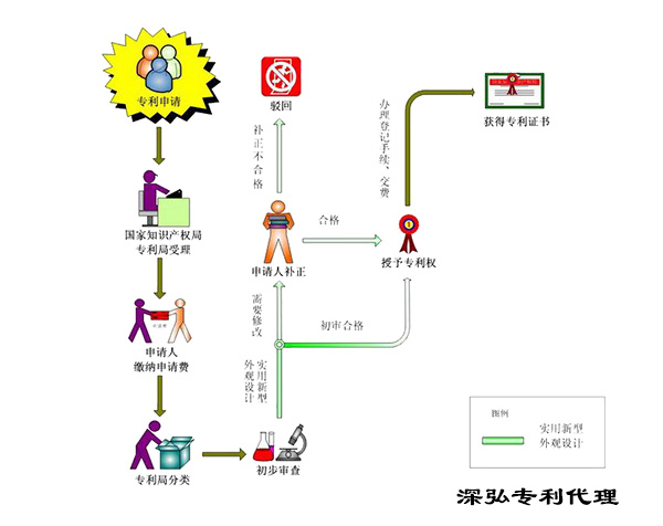 由于发明专利和实用新型专利不一样,这个初步审查阶段,对于发明专利而言,是形式审查,如果形式审查不能通过,则会发出补正书,要求补正;如果形式审查合格,则会发出初审合格通知书并予以公开,此时需要提出实质审查请求并交纳实审费,发明专利则会进入实质审查阶段(这个时间一般6~12个月,具体要看专利局流程速度、;这个阶段对于实用新型或者外观专利而言,则是初审合格,可以予以发放授权通知书阶段;如果审查不合格,则会发出补正通知书(审查员认为有授权前景、或者审查通知书(审查员认为授权前景不明朗、,申请人进行补正或者答复后,审查员如果认为不符合要求,则会予以驳回,专利申请审批流程至此结束;如果审查认为补正或答复后符合授权要求,则下发授权通知书;